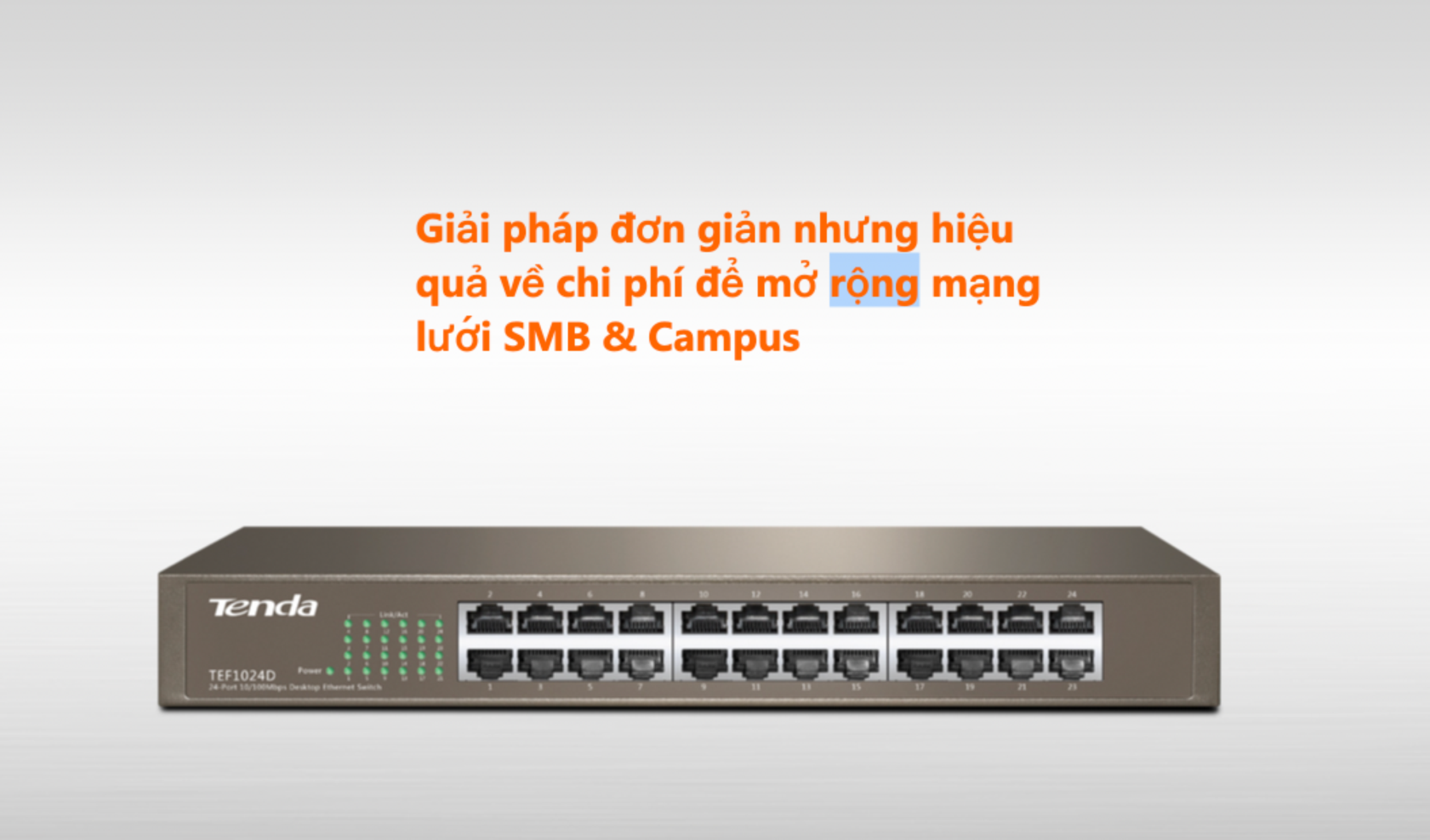 👉 Những gì TEF1024d có: Bộ chuyển mạch 24 cổng 10/100 Tenda TEF1024D được thiết kế đặc biệt để cung cấp giải pháp đơn giản để mở rộng mạng SMB và mạng khuôn viên với chi phí tốt nhất có thể. Kết nối công tắc 24 cổng này với bộ định tuyến và thêm tối đa hai mươi ba máy tính nữa hoặc các thiết bị dựa trên Ethernet khác như máy in